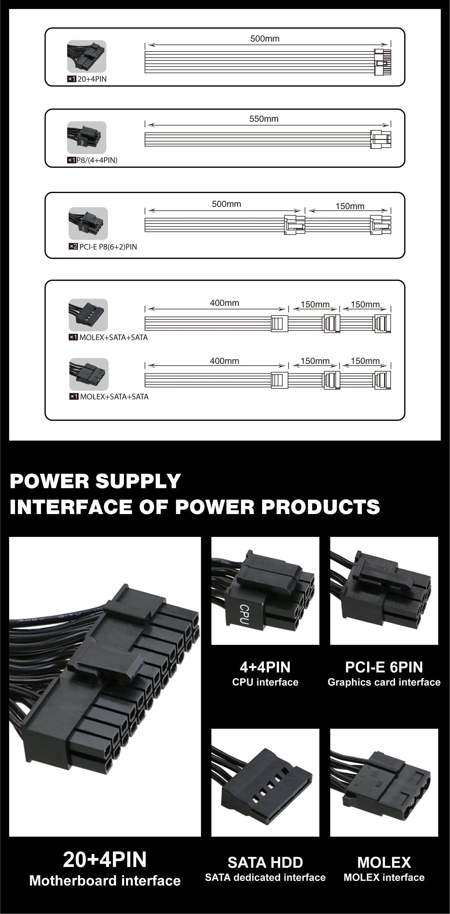 OEM Sample 800W Gaming PC Power Supplies for Desktop and Server 450W 500W 600W 650W 700W 800W RGB 80Plus+ Small Order Acceptance